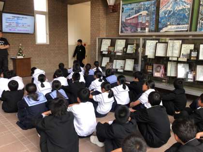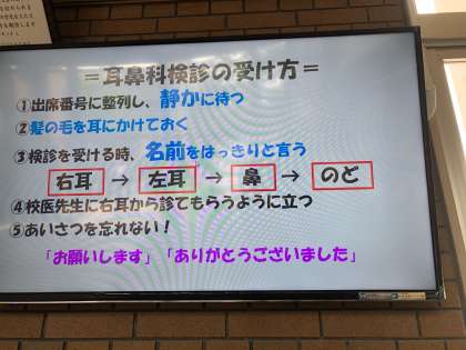 1年生、耳鼻科検診の様子です。 順番を待っている生徒は、静かに整列をして待っています。