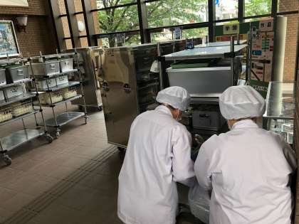 配膳員の方々が毎日、給食を準備して下さっています。 色々な人に感謝をして、給食をいただきましょう!