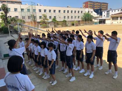 2年生、体育の様子です。 個人種目の練習と、応援合戦の練習をしています!