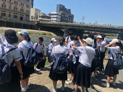 最後のチェックポイントの鴨川にて帰りの切符を受け取り、学校へ戻ります!