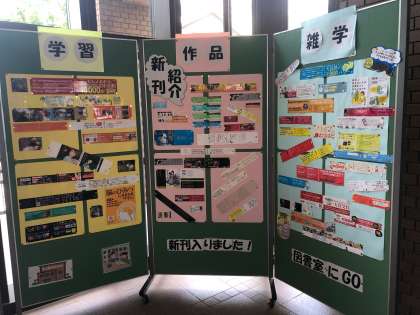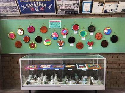 高倉中学校の玄関には、美術で作成した作品や、図書室の紹介がされています!来校された際には、ぜひご覧下さい。