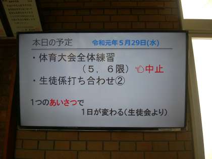 本日の体育大会全体練習は、グランド状態がよくないため明日に延期となりました。