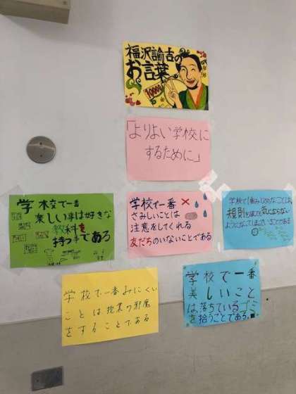 6限 自由曲決め 公開日 2019/06/07 更新日 2019/06/07 1年 本日6限目は合唱コンクールの曲決めです。 廊下には先日の学年集会のお話であった、福沢諭吉のお言葉が掲示されています。とても心に響きます。 いいね(0)