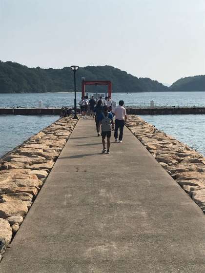 民泊活動です。 今から船で無人島に行き、明日は漁の体験をする予定です。みんなとても楽しんでいます!