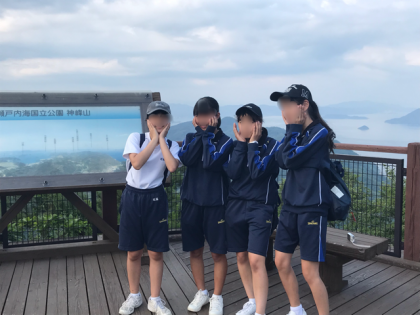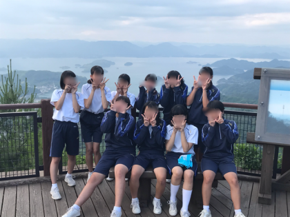 民泊活動美しい夕日をバックにはなりませんでしたが、美しい背景をバックに、記念撮影です!