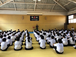 本日の学年集会では、人との関わり方についてです。自分は冗談や、楽しんでる気持ちで接していても、相手はどう思っているかを考えてほしい。小さな冗談などが、すごい嫌な気持ちにさせてしまうことがある。相手を嫌な気持ちをさせない、何よりも「思いやり」を持って接するようにしましょう。