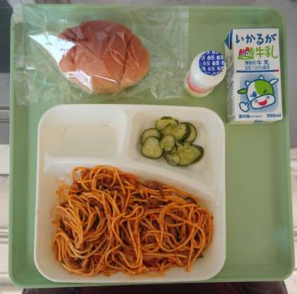 6月13日(木)給食献立 公開日 2019/06/13 更新日 2019/06/13 お知らせ スパゲッティミートソース、きゅうりのバジル風味サラダ、発酵乳、黒糖パン(2/1)、牛乳となっています。 いいね(0)