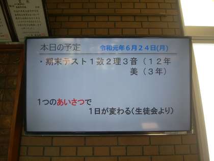 本日より1学期、期末テストです。生徒の皆さん頑張ってください!