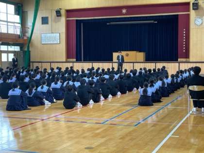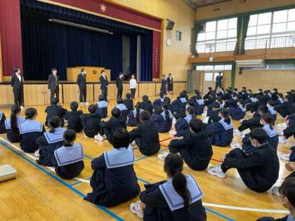 3年生、オリエンテーションです。 各教科担当教員の紹介をしています。