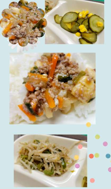 マーボーどうふ丼 公開日 2023/04/13 更新日 2023/04/13 お知らせ マーボーどうふを温かいご飯にのせて『マーボーどうふ丼』にしてみました。 ご飯が進みます。 子ども向けに辛くもなく、良質なたんぱく質がたくさん取れました。 ごちそうさまでした。 いいね(0)