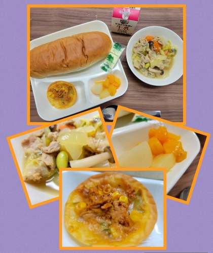 豚肉と野菜のカレースープ煮 公開日 2023/05/02 更新日 2023/05/02 お知らせ GW前の給食は『豚肉と野菜のカレースープ煮』でした。 豚肉を始め、じゃがいも・玉ねぎ・キャベツ・にんじん・むき枝豆・シメジなどが豊富に入っていました。スープとしてパンにもよく合います。最後は『ミックスフルーツ』のデザートで締めました。 ご馳走さまでした。 いいね(0)