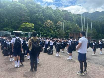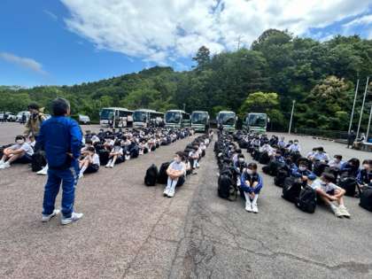 大阪府立少年自然の家に到着しました! いまから集合写真の撮影です。