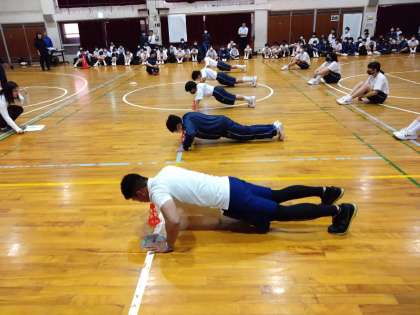 1年生 一泊移住 公開日 2023/05/15 更新日 2023/05/15 お知らせ 次は「力自慢」です。男子は、先生も参加し、腕立て伏せ対決。なんと、全クラス、30回クリアしました。さすが力自慢代表です。 女子は腕ずもう対決。熱戦がくりひろげられました。 いいね(0)