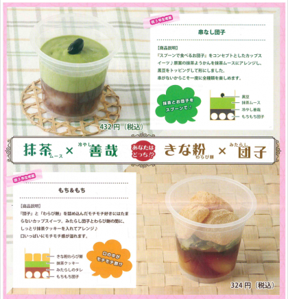 商品1:串なし団子 (抹茶ムース × 冷やし善哉 )、