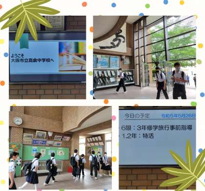 週末の登校 公開日 2023/05/26 更新日 2023/05/26 お知らせ 5月26日(金)週末になりました。今週は中間テストを終え、テスト結果で一喜一憂したり、また体育大会練習で運動場を駆け回ったりと、疲れたのではないでしょうか。 今日は、三年生が来週からの修学旅行に向けての事前指導があります。 土日休み明けの出発なので体調管理をきちんとして当日を迎えてほしいと思います。 いいね(0)