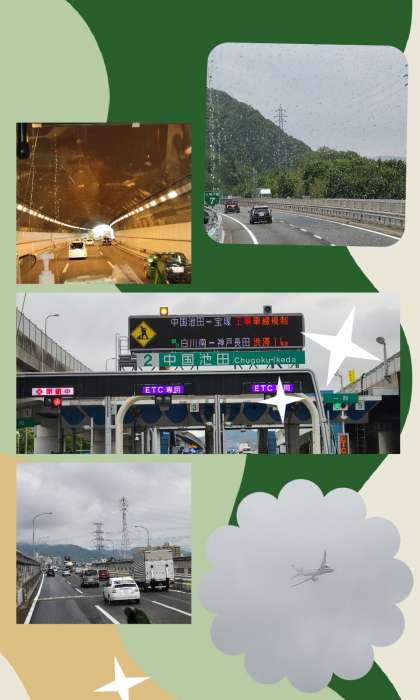 長いバス旅です。ドライバーの休憩と生徒たちのトイレ休憩は欠かせません。これから吉野川ハイウェイオアシスへ向けてバスを走らせます。