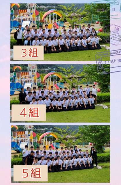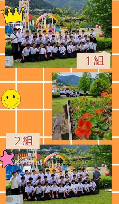 昼食場所『吉野川ハイウェイオアシス』で学級写真を撮影しました。