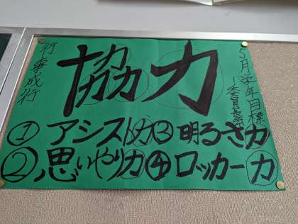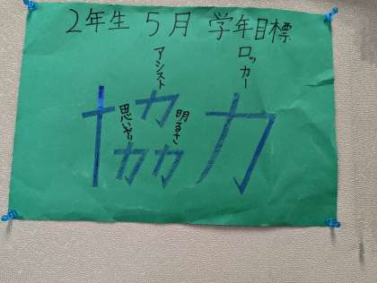写真は、委員長会が書いた5月の学年目標の教室掲示分です。