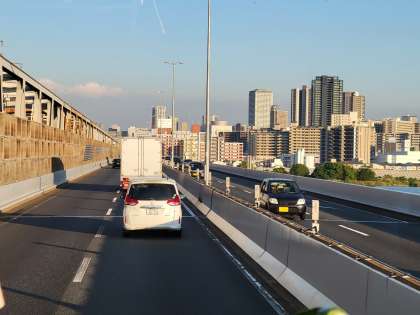 阪神高速、空港線、淀川を渡りました。 現在18時15分。