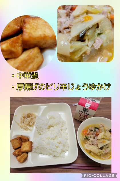 中華煮と厚揚げのピリ辛じょうゆかけ