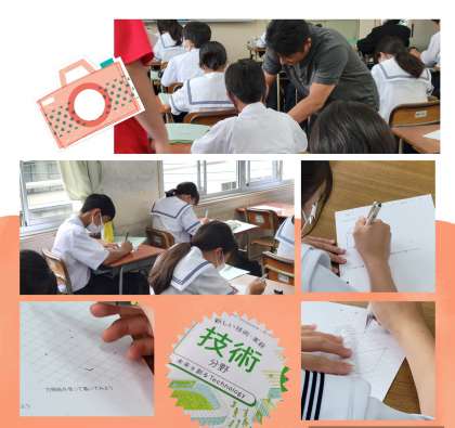 一年生『技術・家庭』技術分野では、構想から制作へ、としてキャビネット図から等角図の描き方を学んでいます。