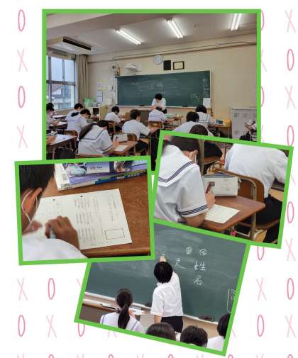 一年生国語、授業開始後すぐに漢字小テストを行っています。日々のルーティンとして生徒たちにも浸透しています。が、現状は読みは書けても、漢字を書くとなると、書けないまま、空白の生徒もいます。事前に出題範囲が示されていますが、家庭学習等での定着には至っていないようです!
