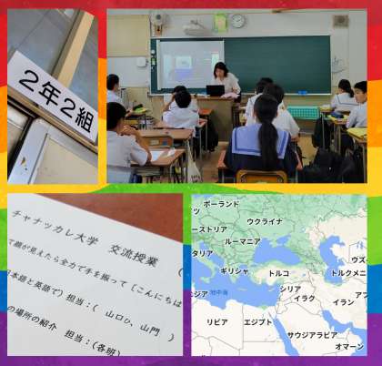 二年生の英語授業では、トルコのチャナッカレ大学との間で交流授業を行いました。