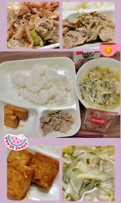 ゴーヤチャンプルと五目汁 公開日 2023/07/13 更新日 2023/07/13 お知らせ 旬の食材を使い工夫された給食、今日はゴーヤをメインにした『ゴーヤチャンプル』でした。豚肉ともやしを合わせて炒めてあります。そこへ鰹節をかけていただきました。また『五目汁』には、タケノコの他に鶏肉、玉ねぎ、キャベツ、エノキタケが入って栄養満点です。 明日は『なすのミートグラタン』です。 いいね(0)
