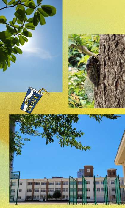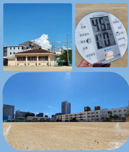 運動場の隅では、夏の強い日光を浴びて、さつま芋が大きく成長しています。収穫が楽しみですね。