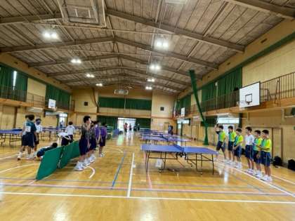 卓球部の活動の様子 公開日 2023/08/23 更新日 2023/08/23 部活動 本日は新北野中学校を招いて練習試合を行なっています。2年生チーム、1年生チームそれぞれ頑張っています。 いいね(0)