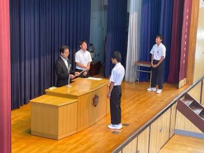 水泳部の表彰です。