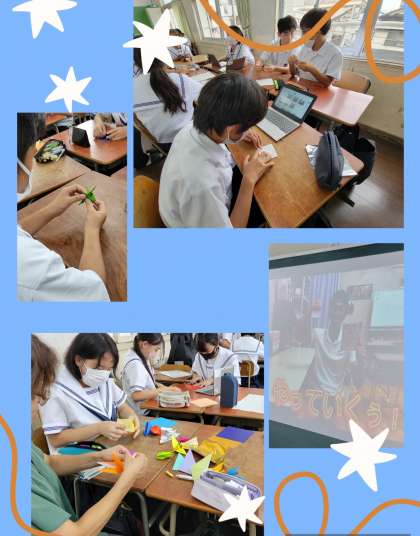動画『M先生による折り鶴教室』を参考にして、平和への祈りを込めた鶴を折っています。