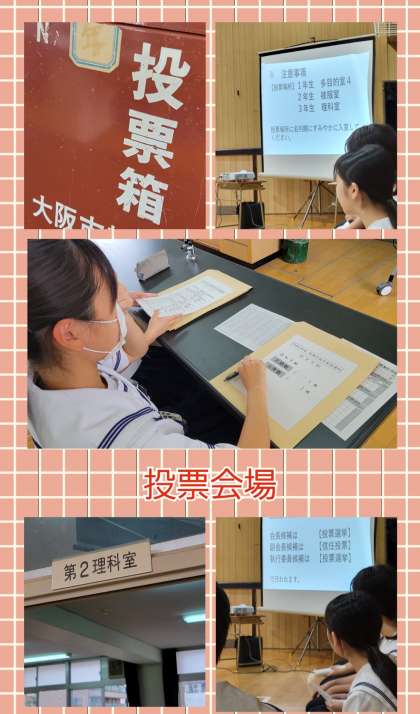立会演説に続いて緊張感に包まれた投票会場、選挙管理委員会が運営し、クラス単位で投票を行っています。