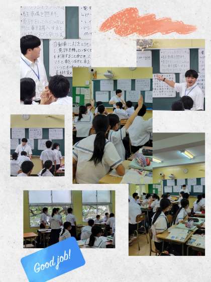 教育実習生による二年生社会科の授業です。実習生も含めたくさんの先生方が見学に来られています。