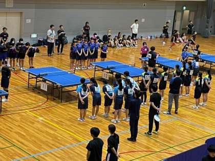 昨日港スポーツセンターで行われた大阪市秋季総体の様子です。8月に行われたブロック予選を勝ち抜き、女子団体チームが出場しました。接戦の結果一回戦敗退でしたが、3年生の力を出し切った試合でした。1.2年生の皆さんに先輩たちの想いがしっかり引き継がれていると思います!