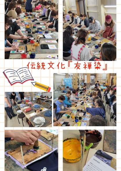 京都では日本の伝統文化『友禅染』を体験。皆さん、素晴らしい作品を製作していました。参加された方々の作品は文化発表会において、PTA コーナーで展示します。