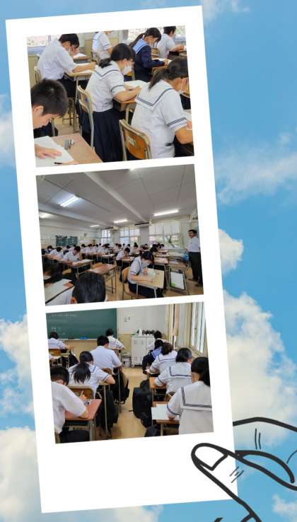 最終日のテストが始まりました。 みんな良い集中力を見せています。 二年生、テスト頑張れ。