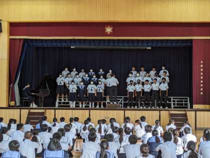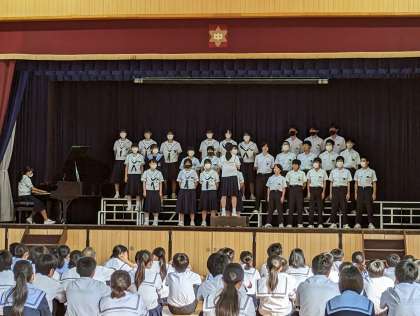 6限目、合唱コンクールで歌う課題曲の練習をしています。
