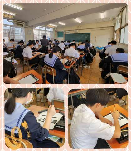 3年生国語では、毛筆を使用した書写の授業を行っていました。