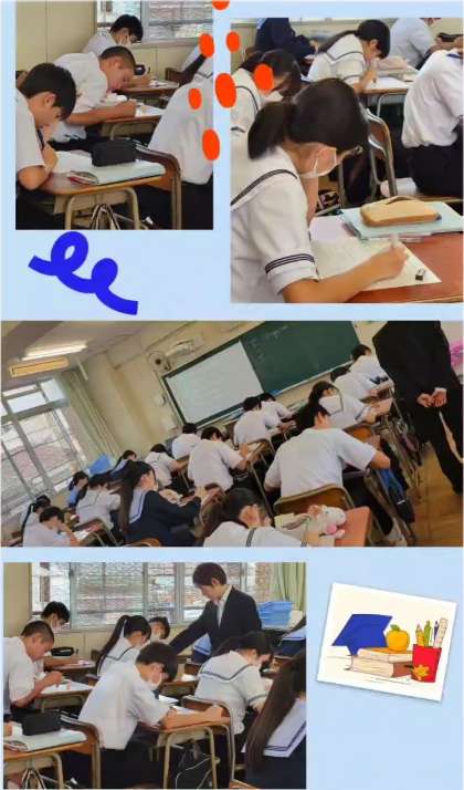 教員が用意したプリントにそれぞれで取り組み、できた生徒たちが席を離れ友だちのところへ移動します。そこでは生徒たちがお互いに教え合う時間を共有していました。