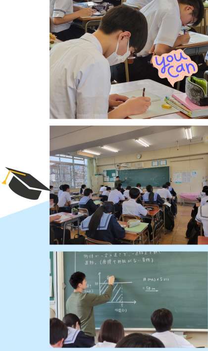 三年生理科では、『等速直線運動』『慣性の法則』について、学んでいました。