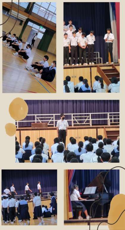 三年生が自由曲のリハーサルを行いました。代表あいさつや進行、審査員など生徒たちが全て運営します。