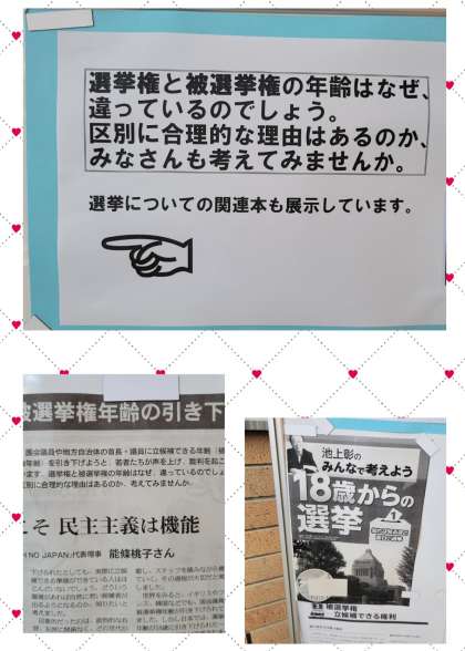 今日から玄関の掲示板には18歳選挙についての新聞記事が掲載されていました。