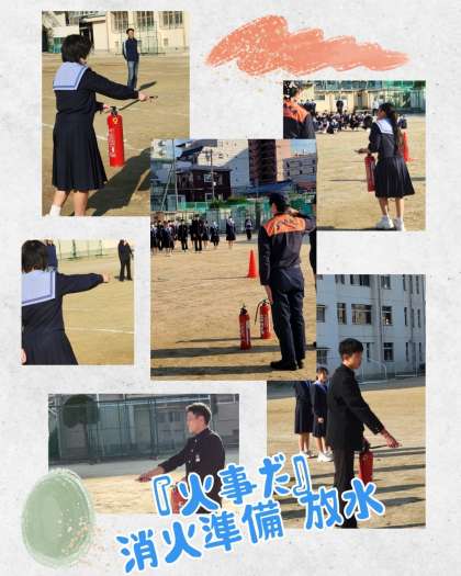 後半は三年生代表による『水消火器』を使った『消火訓練』です。