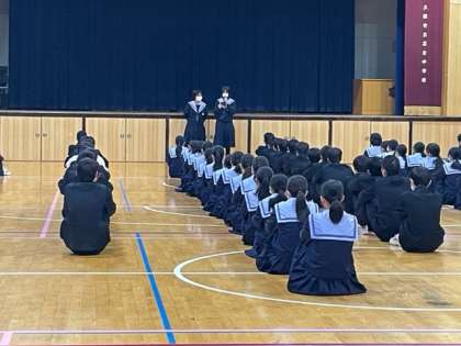 3年 学年集会 公開日 2023/11/17 更新日 2023/11/17 3年 3年生、朝の学年集会です。 委員長より、11.12月の学年目標の発表がありました。 目標は「もうひと踏ん張り」です。 勉強は我慢も多く、しんどいことも多くありますが、もうひと踏ん張りして、共に明るい未来を見に行きましょう! いいね(0)