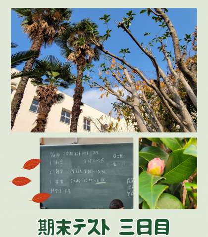 二学期末テスト三日目。昨日はテストの中日、最終日のテスト対策にありがたい祝日になったのではないでしょうか。