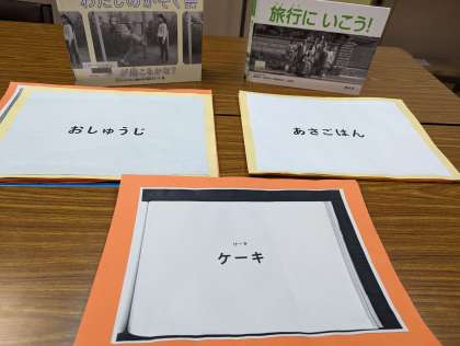 今日は、LLブック(文字のない写真だけの本)を用いて、即興で物語と台詞を考え、紙芝居形式で、前に出て発表しました。