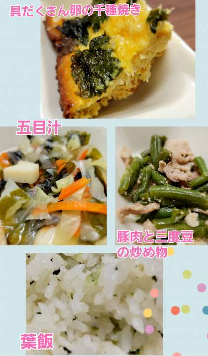 12月7日(木)の給食『具だくさんの卵の千草焼き』 公開日 2023/12/08 更新日 2023/12/08 お知らせ 卵焼きに色々な食材(ささみ、とうふ、コーン、みつば)を細かく刻んで焼き上げた千草焼き。 卵だけでなく具だくさんなので、食べ応えもあり、メインのおかずとしても使えそうですね。これだったら冷めても美味しいので、お弁当に入れてもいいかも。 いいね(0)