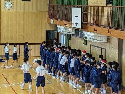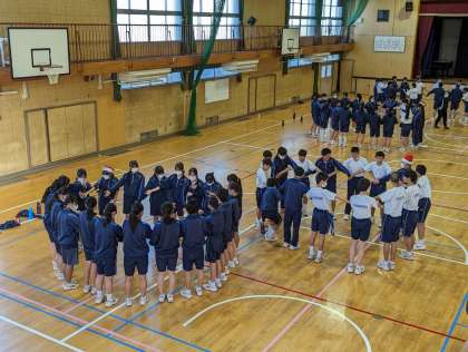 じゃんけんグータッチでは、本日出席の学年生徒全員がじゃんけんをしながら、一列になり、グータッチをしていきます。