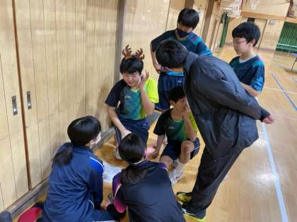 本日は「クリスマス杯」と称して校内大会を行いました。上級生下級生関係なく、男女混合の4チームによる総当たり戦です。1年生の成長に驚く2年生の姿も見られ、良い一年の締めくくりになりました。年内の練習もあと少し。切磋琢磨して頑張りましょう!